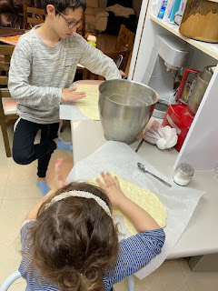 אז פותחים כדור בצק ומשטחים על ניר אפיה